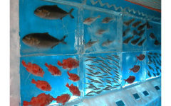 Экспозицию «ледяного аквариума» составили 450 экспонатов 80 видов представителей морской фауны. Здесь и крабы, и осьминоги, и многочисленные рыбы. Все они вморожены в прозрачные глыбы льда и выставлены на всеобщее обозрение. Для создания соответствующей атмосферы эти ледяные глыбы подсвечиваются голубым светом.