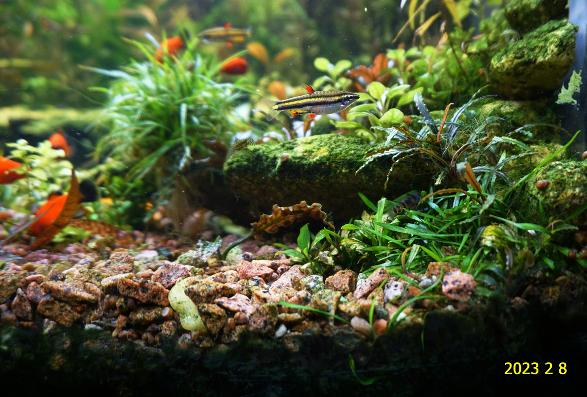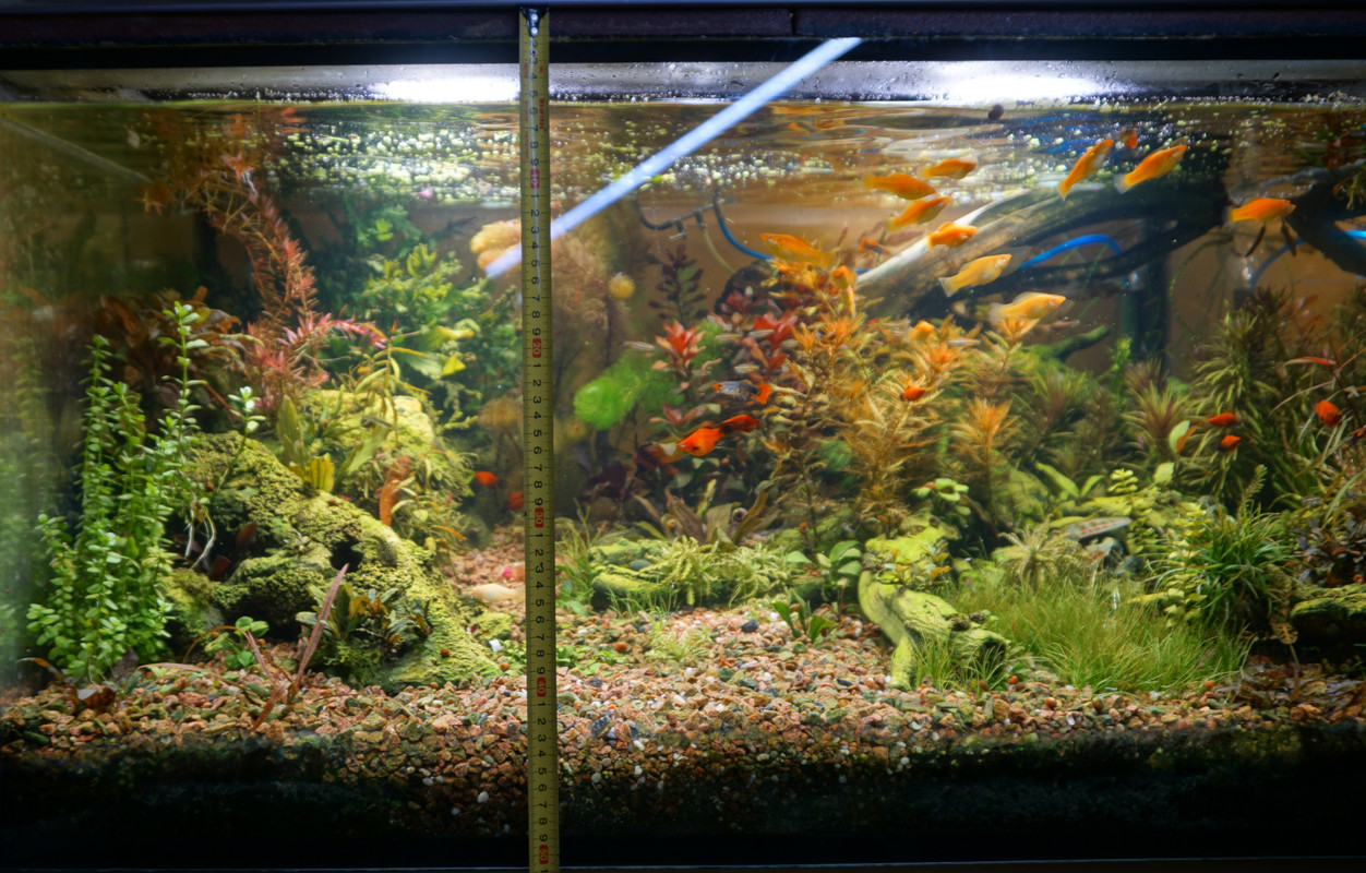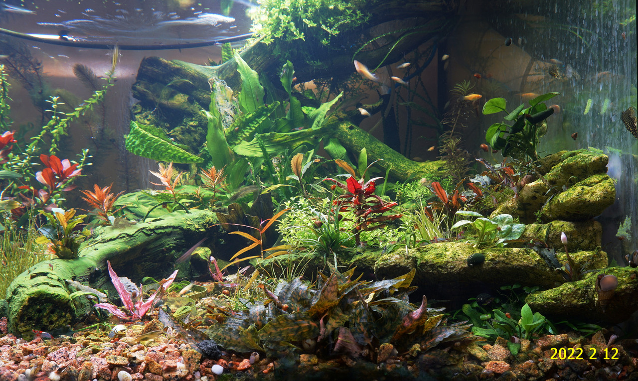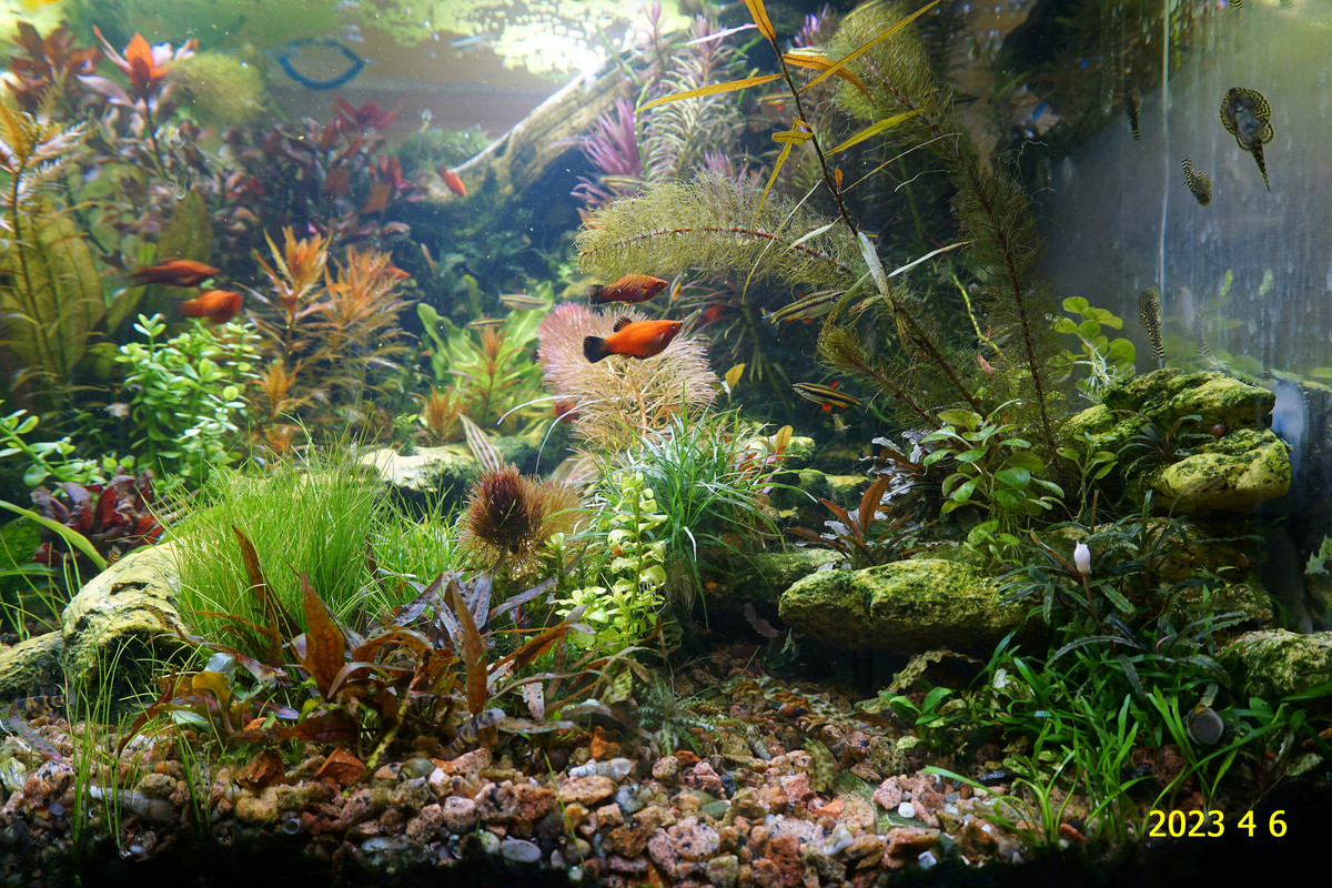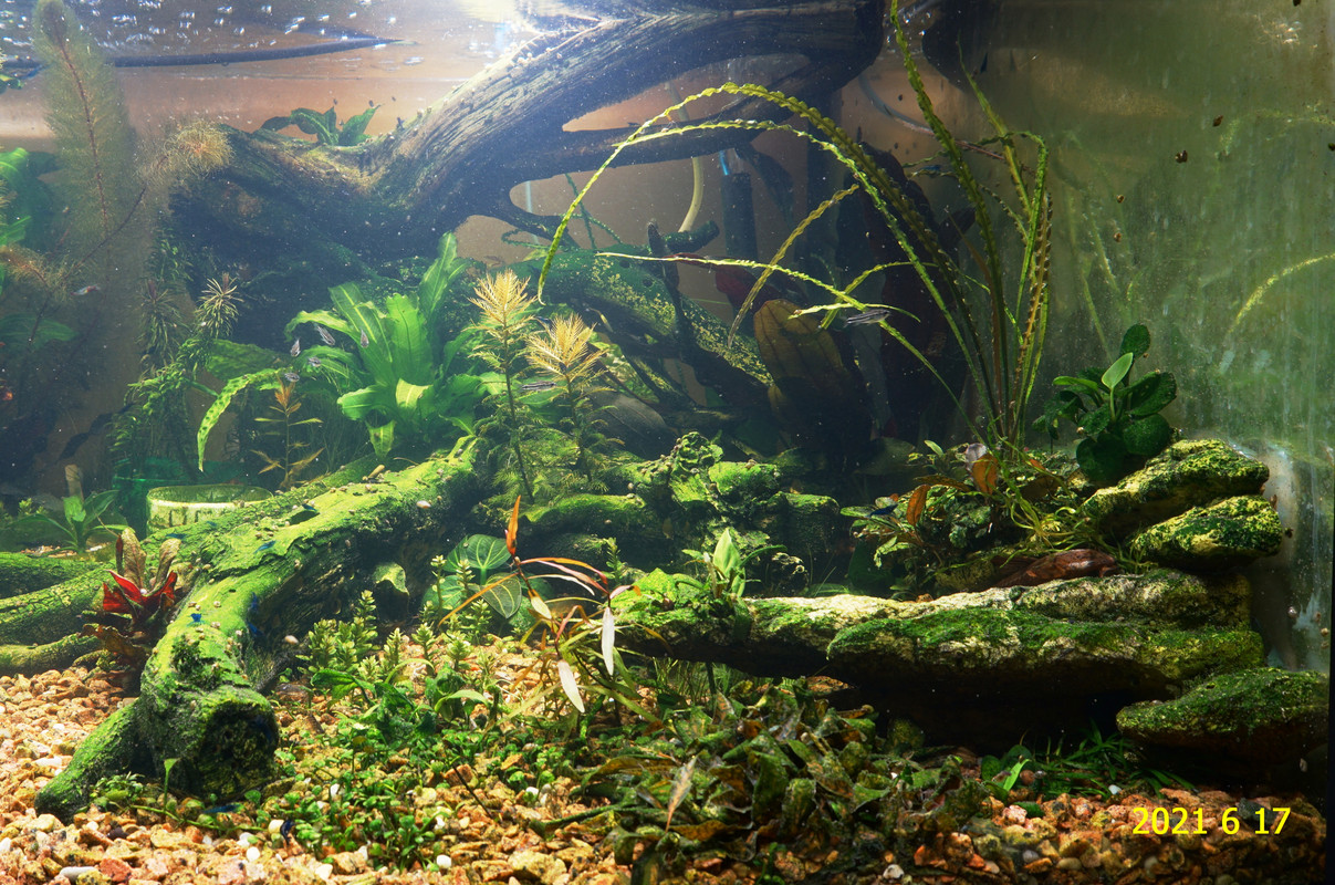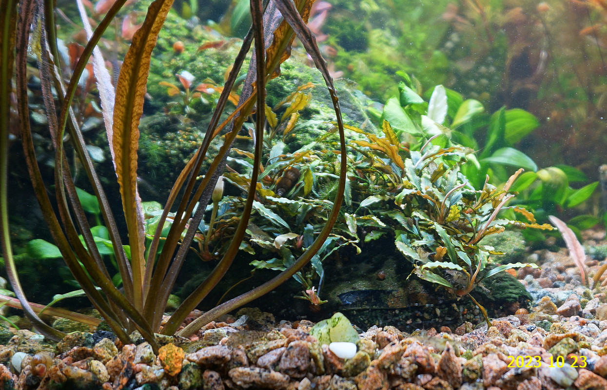 Вот уже идёт третий год жизни аквариума много это или мало , не так уж и важно , можно просто сказать , процесс идёт. Если говорить об использовании гранита в качестве грунта то я доволен , искать больше ничего не буду , единственное что красный гранит в нашем регионе не очень доступен. Я не могу проводить ни каких измерений , а чисто теоретически предполагаю первоначальный негатив для растений это выделение натрия , растениями он почти не используется , потом с подменами воды всё нормализуется. По фракции тоже норма 5мм-15мм это хорошо , использовать начал за не имением другого но опыт для того и существует чтобы на нём учится он убедил что утверждение о том что в крупный грунт будет проваливаться корм и отходы и это будет вызывать негатив оказалось не верным. При такой фракции грунта на поверхности не скапливается ил , всё проваливается и такое явление как механическая муть не появляется. От перекорма иногда появляется биологическая но это на несколько часов. Думаю объяснение этому лежит в том что такой грунт более населен микро организмами , и переработка всего того что туда попало идёт на более глубоком уровне и для меланий такая среда предположительно предпочтительней.