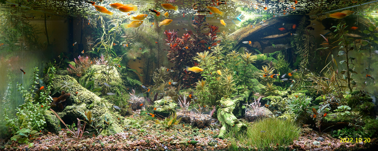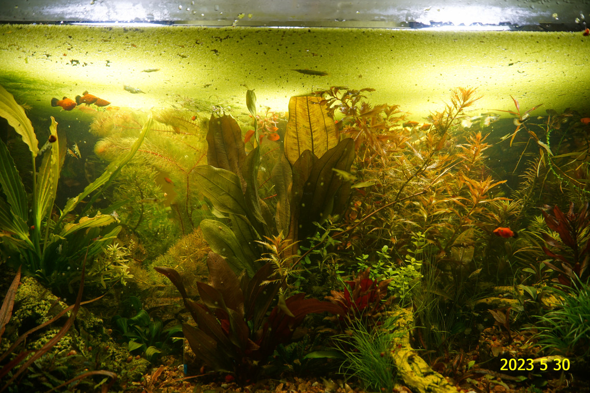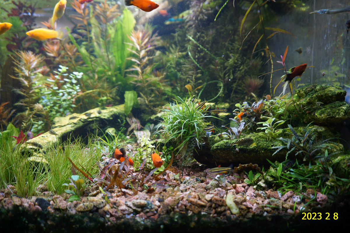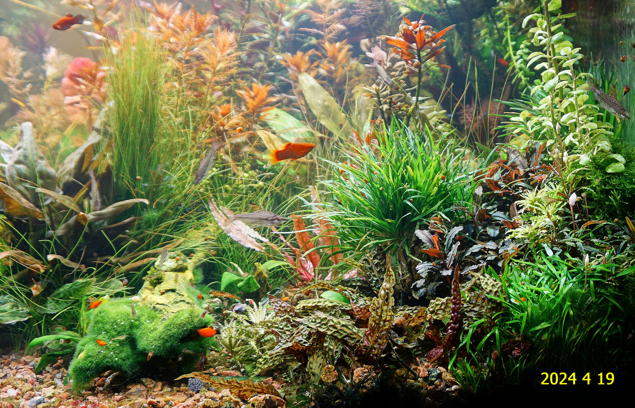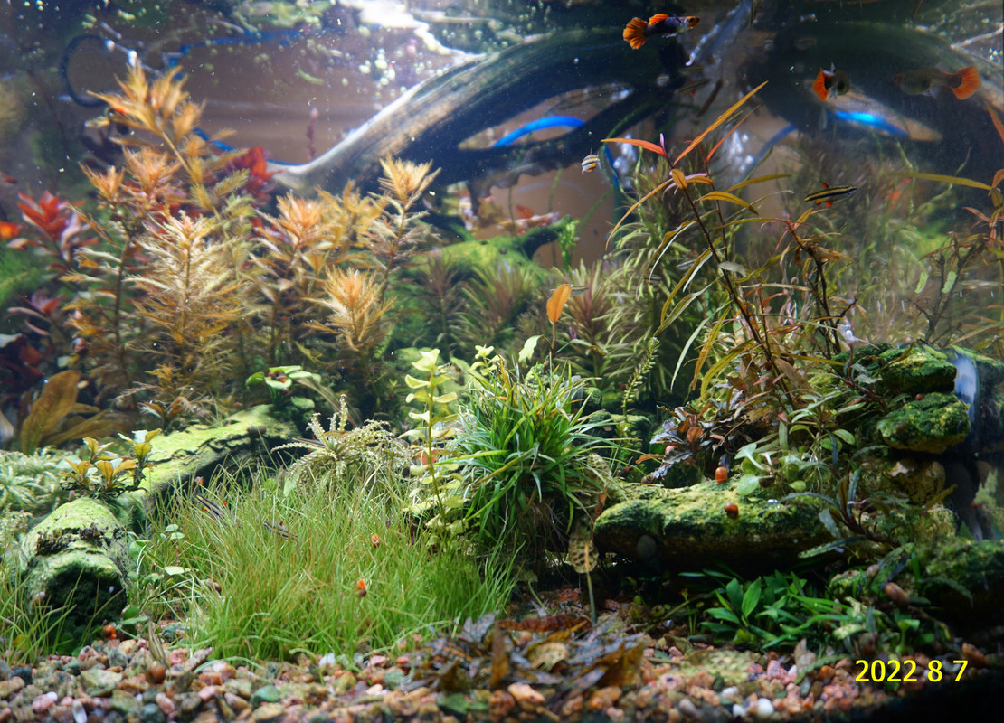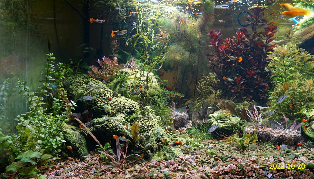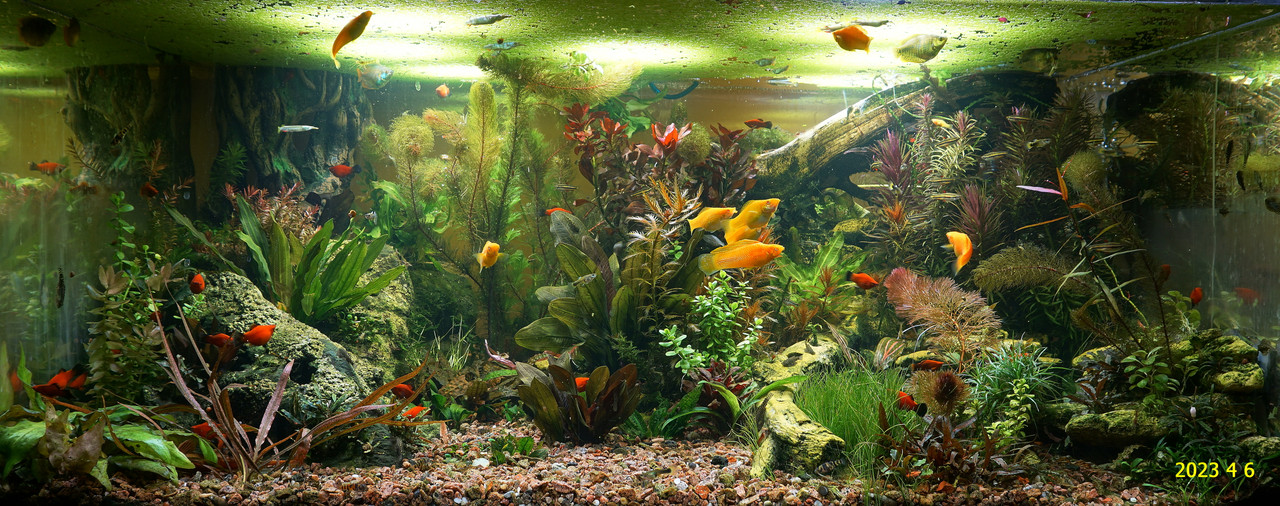 Вот уже идёт третий год жизни аквариума много это или мало , не так уж и важно , можно просто сказать , процесс идёт. Если говорить об использовании гранита в качестве грунта то я доволен , искать больше ничего не буду , единственное что красный гранит в нашем регионе не очень доступен. Я не могу проводить ни каких измерений , а чисто теоретически предполагаю первоначальный негатив для растений это выделение натрия , растениями он почти не используется , потом с подменами воды всё нормализуется. По фракции тоже норма 5мм-15мм это хорошо , использовать начал за не имением другого но опыт для того и существует чтобы на нём учится он убедил что утверждение о том что в крупный грунт будет проваливаться корм и отходы и это будет вызывать негатив оказалось не верным. При такой фракции грунта на поверхности не скапливается ил , всё проваливается и такое явление как механическая муть не появляется. От перекорма иногда появляется биологическая но это на несколько часов. Думаю объяснение этому лежит в том что такой грунт более населен микро организмами , и переработка всего того что туда попало идёт на более глубоком уровне и для меланий такая среда предположительно предпочтительней.