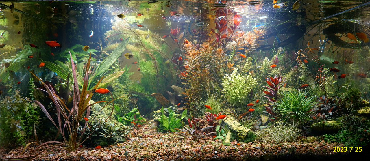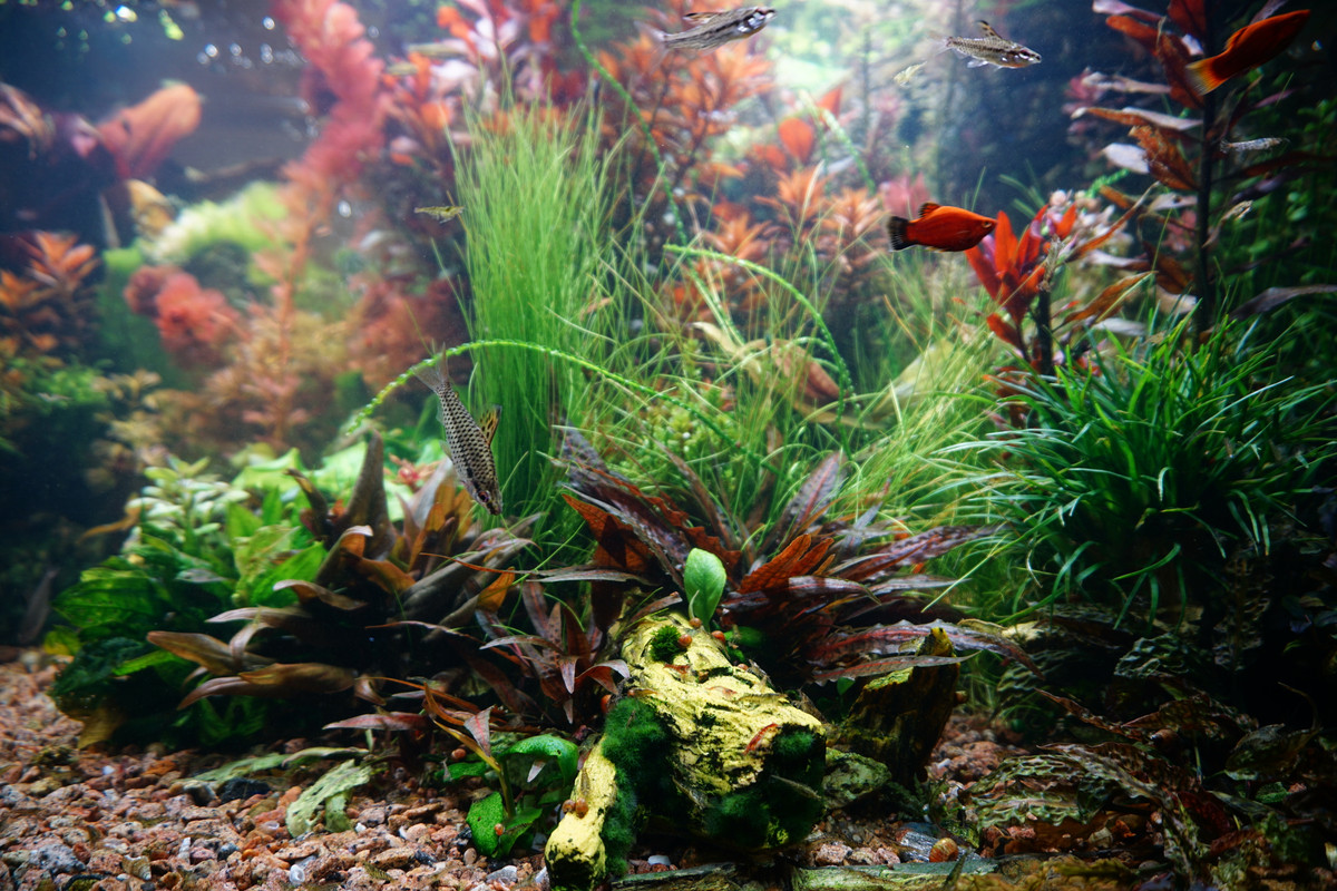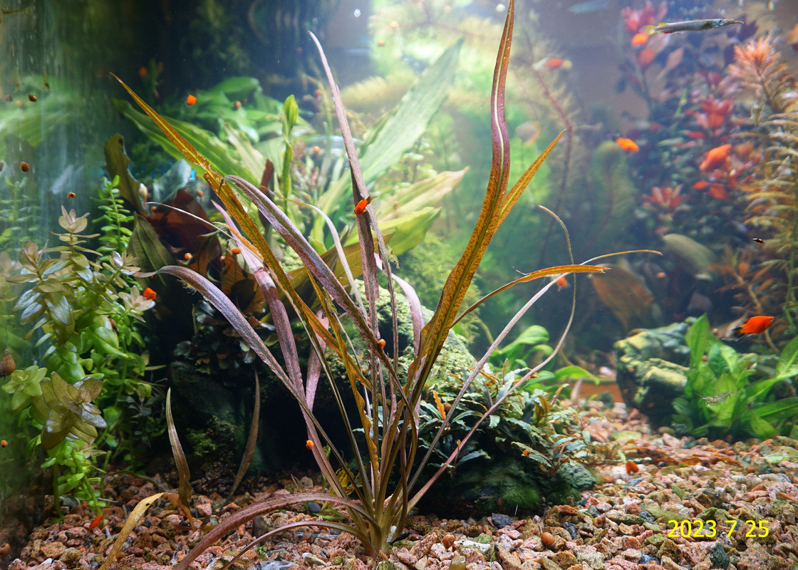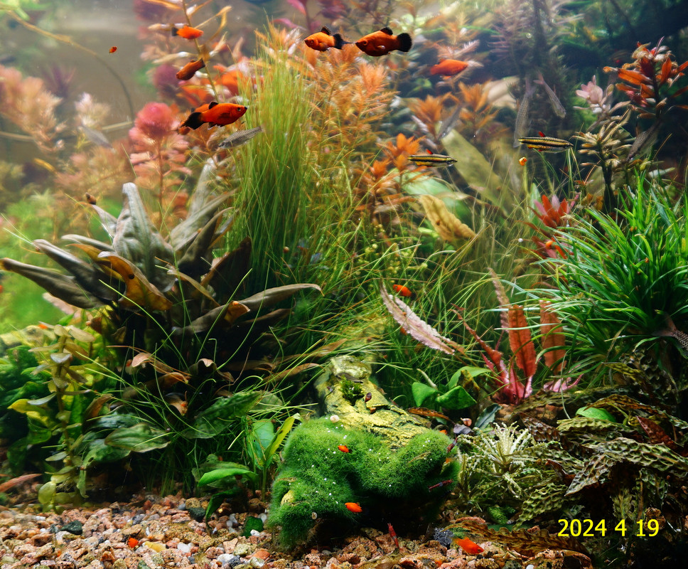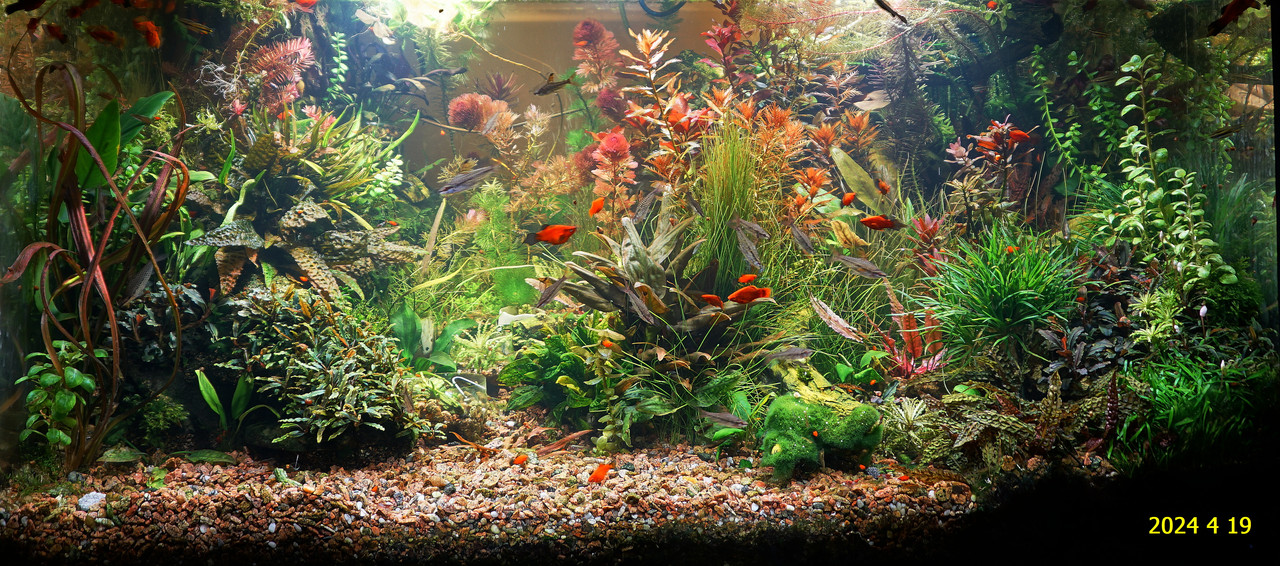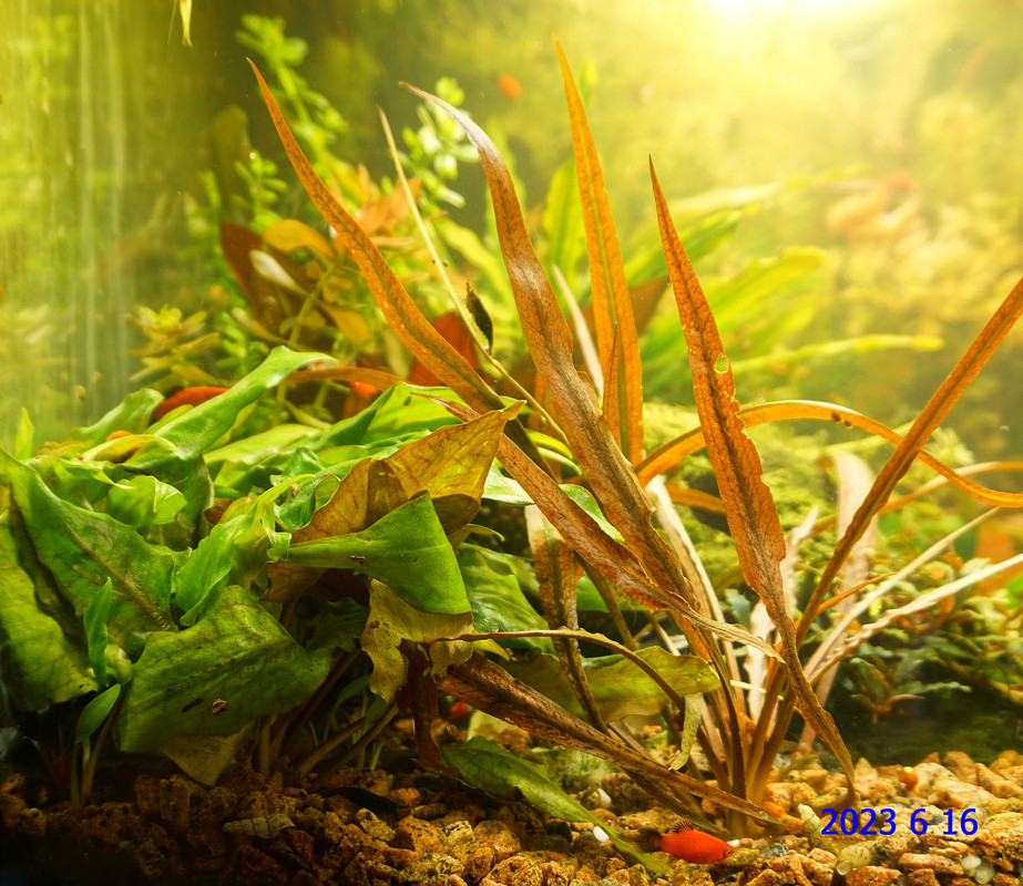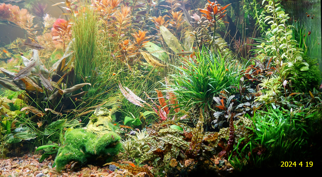 Вот уже идёт третий год жизни аквариума много это или мало , не так уж и важно , можно просто сказать , процесс идёт. Если говорить об использовании гранита в качестве грунта то я доволен , искать больше ничего не буду , единственное что красный гранит в нашем регионе не очень доступен. Я не могу проводить ни каких измерений , а чисто теоретически предполагаю первоначальный негатив для растений это выделение натрия , растениями он почти не используется , потом с подменами воды всё нормализуется. По фракции тоже норма 5мм-15мм это хорошо , использовать начал за не имением другого но опыт для того и существует чтобы на нём учится он убедил что утверждение о том что в крупный грунт будет проваливаться корм и отходы и это будет вызывать негатив оказалось не верным. При такой фракции грунта на поверхности не скапливается ил , всё проваливается и такое явление как механическая муть не появляется. От перекорма иногда появляется биологическая но это на несколько часов. Думаю объяснение этому лежит в том что такой грунт более населен микро организмами , и переработка всего того что туда попало идёт на более глубоком уровне и для меланий такая среда предположительно предпочтительней.
